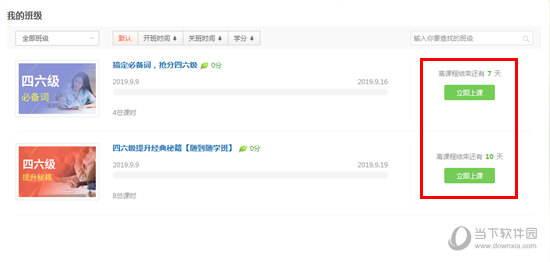 2、出现我的班级界面,可以看到当前可上课的班级,查找并选择想要上课的班级,点击右边的立即上课;即可开始上课,如下图所示: