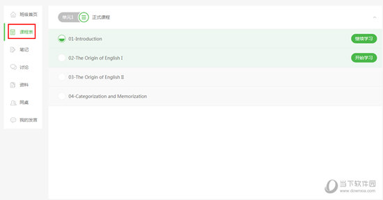 3、进入课程界面,点击左边的课程表,选择想要上课的课程,点击继续学习;或开始学习;即可上课,如下图所示: