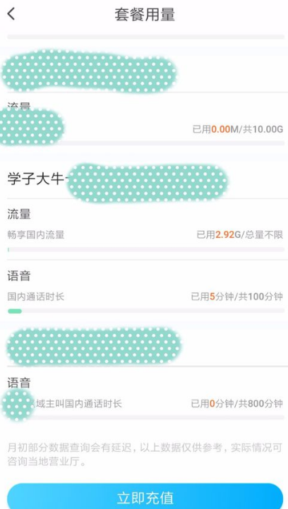 3、然后在“套餐详情”页面上点击打开下面的“套餐用量”。