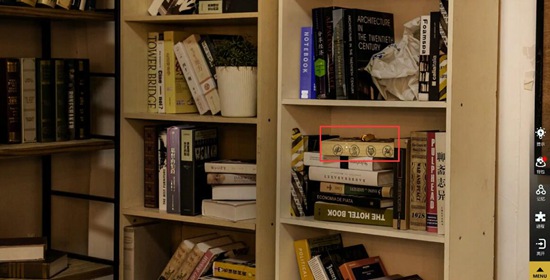 3. 书柜里有一个木盒,木盒侧边也有四个图案,这四个图案与墙壁上某些人物便签上的图案相同。