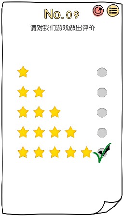 脑洞大神第9关怎么通关?许多同学都不清楚,游戏中大量原创谜题,答题消耗体力,体力需要通关时间恢复,这款脑洞游戏和好玩关键是不会弹广告,闲散时间玩一玩挺合适的,大量的关卡等你来挑战,难度越来越大,非常具有挑战性,那么这里小编就给大家带来请对我们游戏做出评价通关步骤一览,希望能作为玩家的参考。