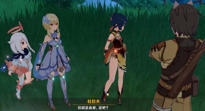 2、杜拉夫想让香菱做料理,香菱拒绝之后掉落就走,玩家需要追上香菱;