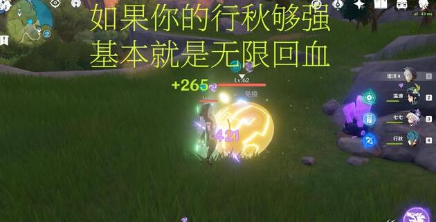 重要的是当你被怪物揍的时候,只要你行秋生命值够高,回血量就很嗨,你就可站桩输出。