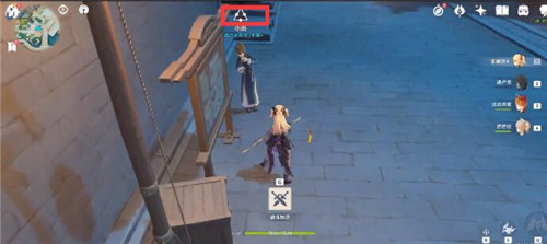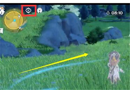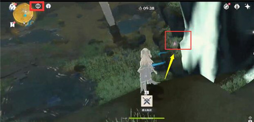 3、到达任务地点之后,点击打开左上角的元素视野,可以看到蓝色波纹,跟着波纹走;