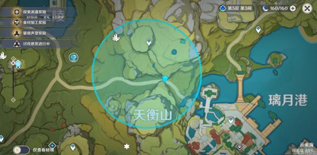 3、共鸣石作用时,会出现一个蓝圈,这个蓝色圈就是神瞳所在范围。