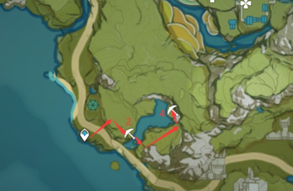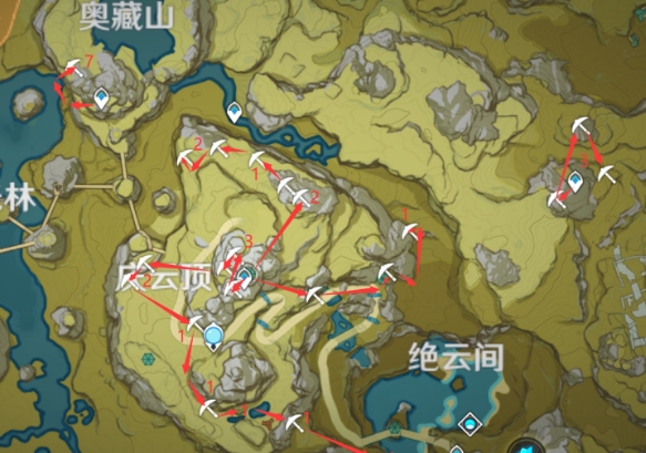 ②璃月路线1/2/4/5共22个水晶点,5分钟左右