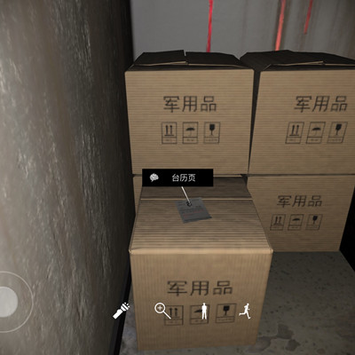 台历页这个线索首先需要钥匙这个线索,然后打开锁着的门,蹲着进入一个密室,然后在右边堆放的箱子上可以找到。