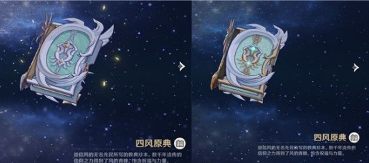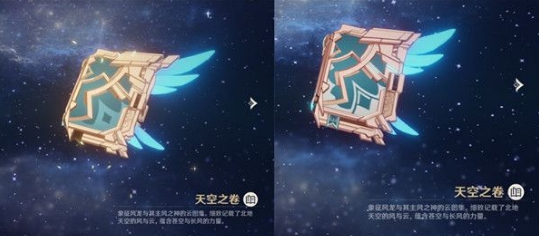 天空系列武器,突破后颜色稍微加深,没有那么闪亮,但是书上花纹更加复杂精美,原本暗淡的书签色调也更换成了天空系列特有的颜色且有了精美的花纹。
