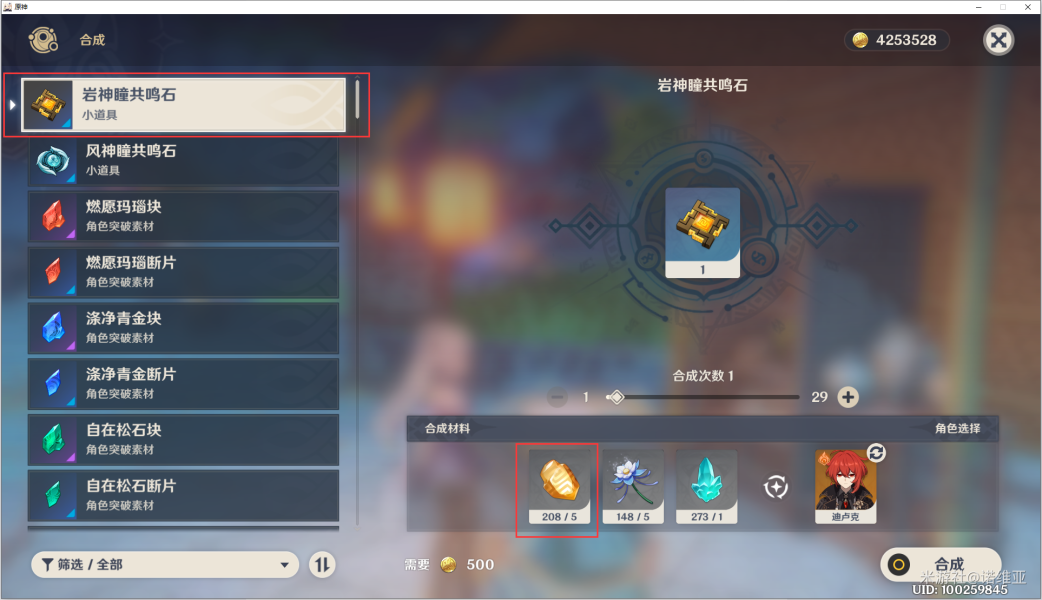2.岩神瞳共鸣石合成