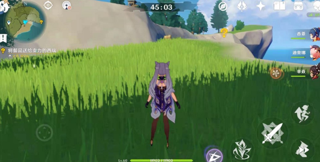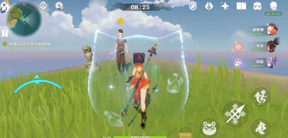 5、很快就到了目标点,有猫咪的可以加盾加速哦,一些角色的长摁普攻可以快速前进,一定要学会使用。