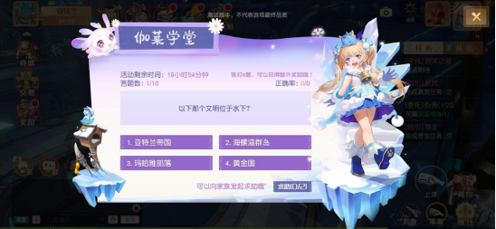 活动描述:迦莱学院的公开课中,导师露露每天都会讲述这个大陆的秘密,年轻的冒险者, 对此你又了解多少呢?