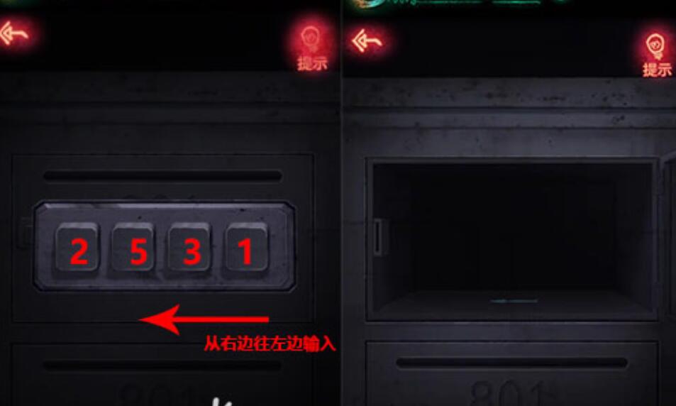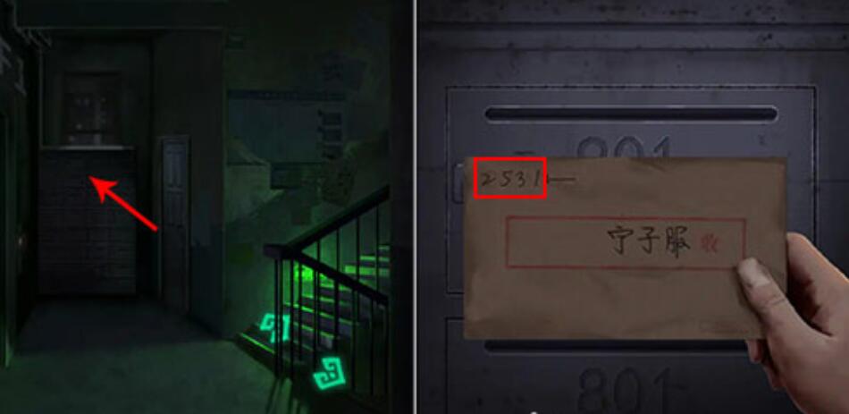 就是玩家进入小区一楼的时候,可以看到这里有个密码柜。然后需要玩家输入密码,这个密码就是玩家在灯上,然后照射这个邮件的时候,可以看到的数字。