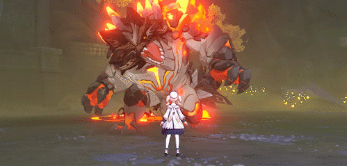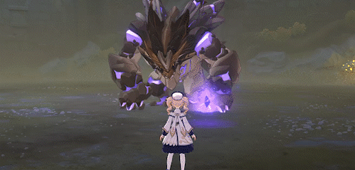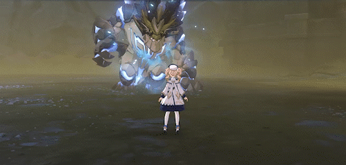 古岩龙蜥汲取元素的力量,短暂蓄力后,进行「原岩喷吐」攻击。当这种攻击命中受到护盾庇护的角色时,龙蜥会受到伤害反噬;对应龙蜥元素的护盾或是岩元素护盾,反噬的伤害会更高。当血量低于约1/3时将不再释放。