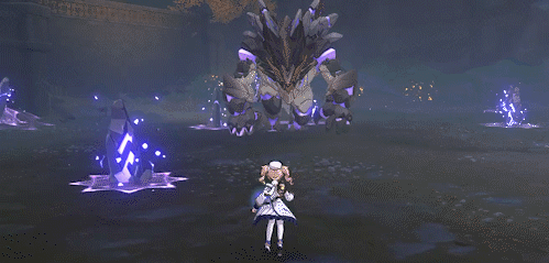 古岩龙蜥旋转上半身,抬起左爪,猛烈的拍击地面并撕扯收回。造成岩元素伤害。