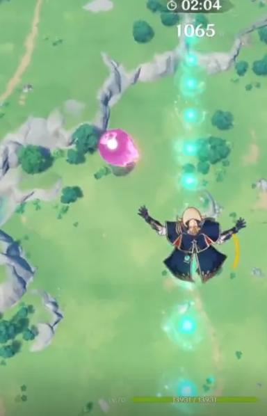 7、最后我们可以根据地面上花环的位置选择一段风球吃掉。