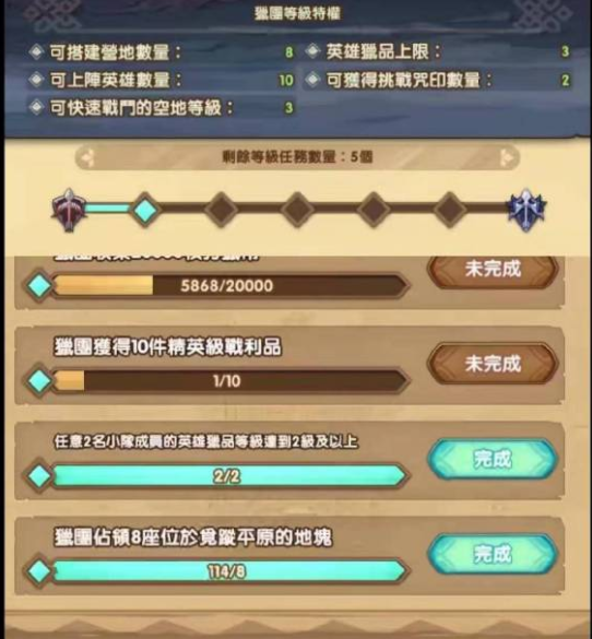6、补充一点图,刚刚忘了。二级猎团的升级条件