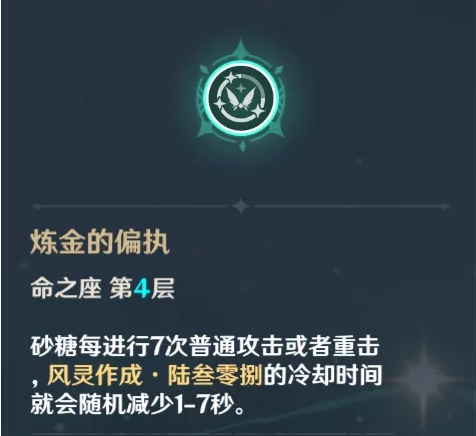 命座价值相对较高,效果基本等价于每场战斗中多释放一次e技能。砂糖二连e可以eaea连续触发四次扩散。