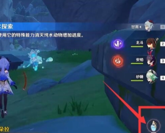 玩家完成潺潺向前的相关任务后,每天都会在地图上刷新相应的范围,玩家前往指示地点就能进行纯水动物的捕捉活动。