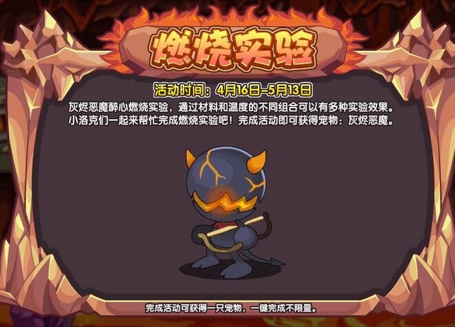灰烬恶魔醉心燃烧实验,通过材料和温度的不同组合能获得不同燃烧结果。小洛克们一起来帮忙完成实验吧!