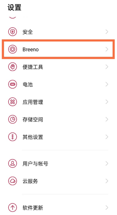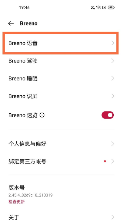 2、点击【Breeno语音】选项,点击【语音唤醒】。