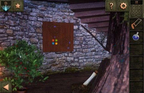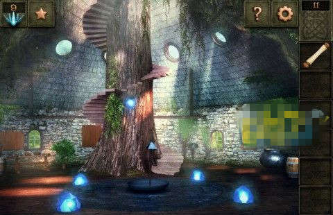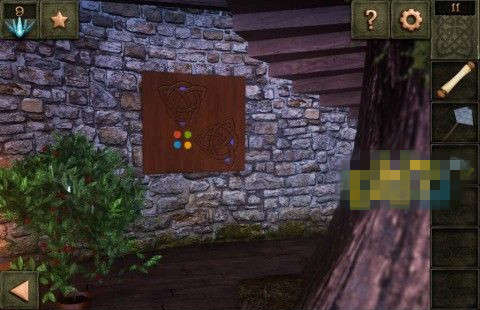 3、点击大树右边的墙,得到墙上的绿叶和一个小型金字塔。