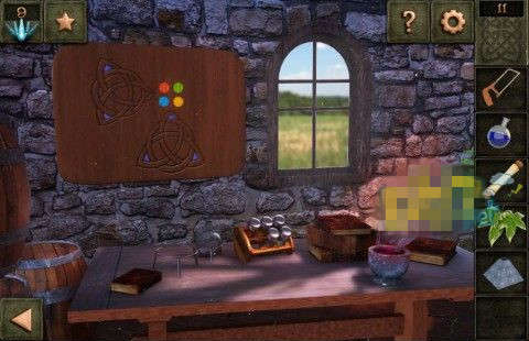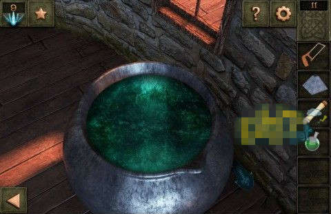 5、按照卷轴的顺序,将材料加入锅里,得到一瓶绿色液体;拿到锅旁边的神器部件。