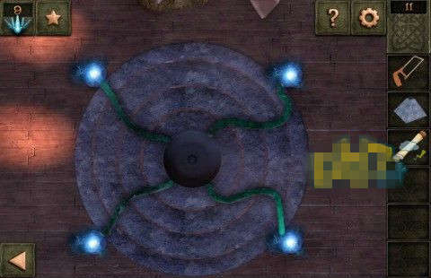6、点击中间的石盘,旋转连接后,倒入绿色液体。