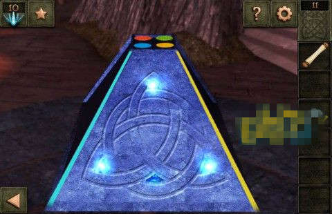 7、使用锯子得到楼梯下的铁条;拼合金字塔和棍子,放入石盘中间。
