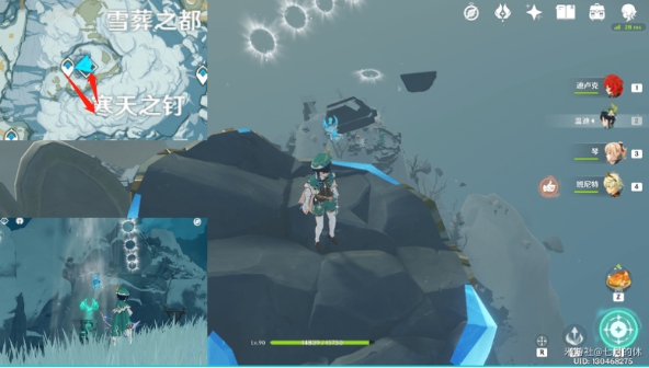 完成方法:队伍携带风元素角色,使用风元素攻击风柱子,就会产生风场,连续利用两个风元素柱子的风场飞上去即可。