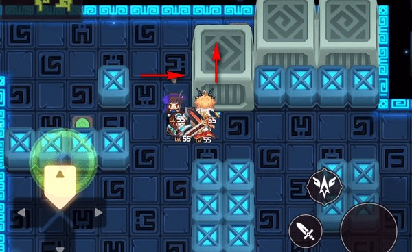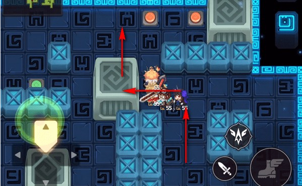 绕到前面推动之后,再将箱子往上推动压住按钮,通往第二部分的机关就会打开;