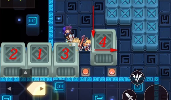 其实第二部分前几号箱子推动的顺序并不是那么的关键,注意先将最右边位置的箱子放好,为中间位置的箱子预留位置就可以了。