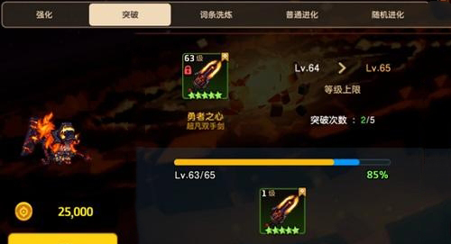 完成突破后,大家就可以使用其它没什么用的低品级武器或者锻造锤进行升级啦。