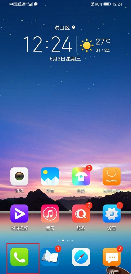 第一步、以华为P20为例,打开华为手机,点击桌面的拨号图标,如下图所示: