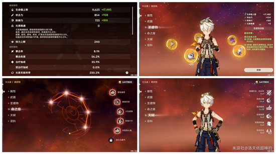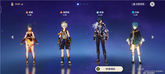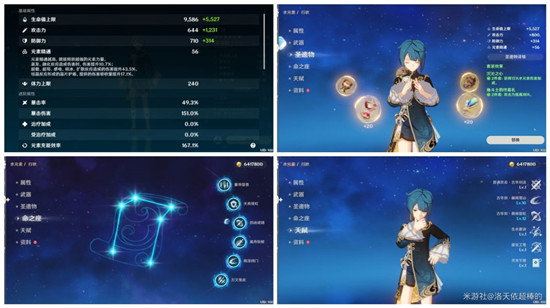 行秋∶81级,祭礼行秋,输出定位,167充能与祭礼特效双E保证Q技能循环,圣遗物水2+角斗士2增强输出能力。