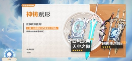 假设在某期武器祈愿「神铸赋形」中,5星武器「天空之傲」与「四风原典」为当期5星UP武器。
