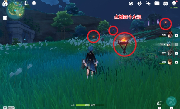 1、要开启这个秘境,你首先需要完成世界任务「远吕羽氏遗事其三」,完成任务后,八酝岛南部区域雷暴将停止,天气放晴。此时点燃「阵代屋敷」秘境前的火把即可开放秘境。