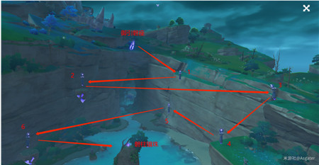 该处共有1座【御引磐座】、6座【雷承之鉴】,若所有装置均保持原位置没有改变,那么调整顺序是: