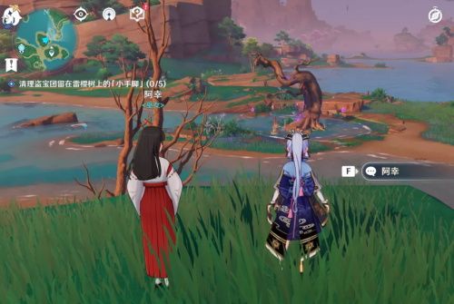 2、当我们从盗宝团处得知他们在雷樱树盗取力量后,阿幸委托我们帮助清理雷樱树。需要清理的一共5个雷樱树,在地图上不会显示,在阿幸对面就有一棵。
