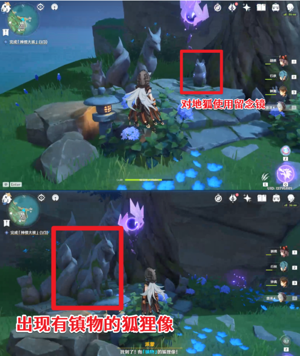 在神里家北面的沙滩上有个山头,上面有个神瞳,你对着神瞳旁边的狐狸拍照就出来了
