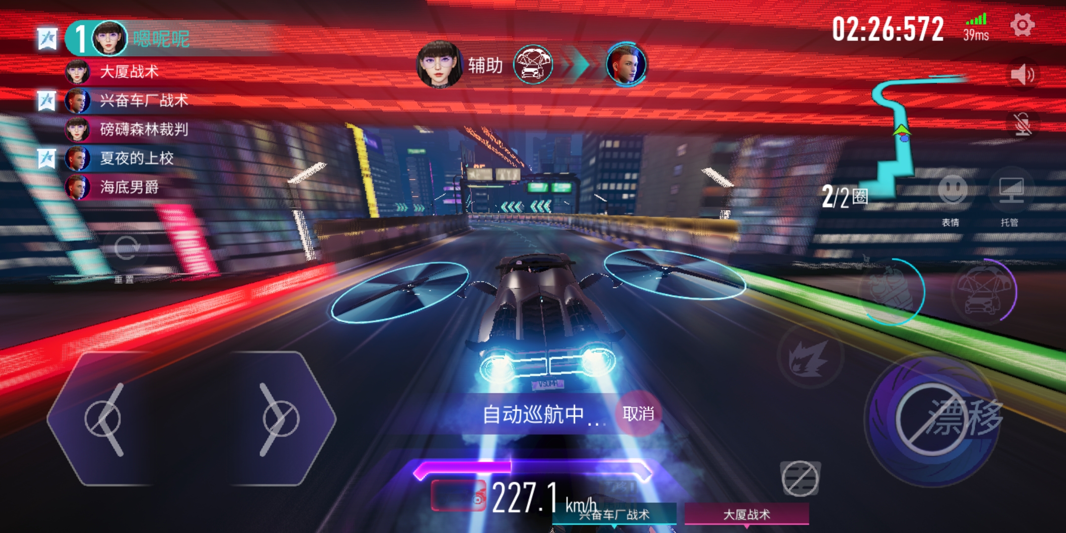 多注意队友的位置以及技能充能情况。随后,正常利用漂移来碰撞对手的车辆,同时注意累积氮气能量。最后,若发现队友落后就用空中巡航来找回优势;若队友领先则等到车辆损毁再用技能。