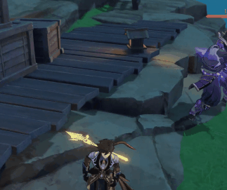 炎威与雷腾将刀架于右侧,并向前突刺,一般会在距离玩家一段距离的时候使用。释放速度很快,但攻击范围较窄。对反应不太自信的玩家保持跑动就可以躲开。(我个人总是下意识的想冲刺踩刀)