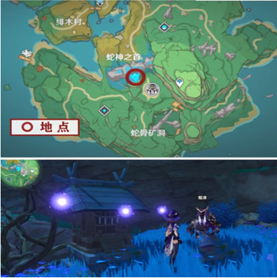 在八酝岛的蛇神之首附近,如图: