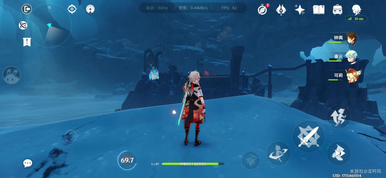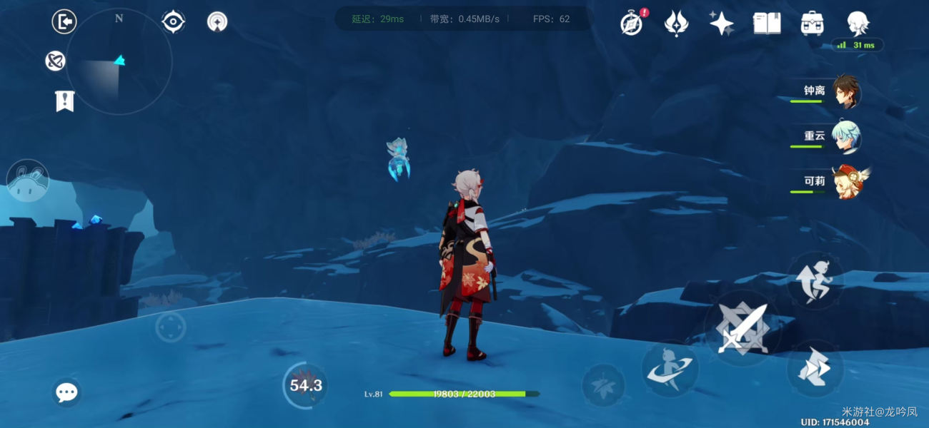 先到最高的柱子上,站到钟离或岩主的柱子上,再跳起用风之翼,同时用扇子加速到达下图所示的地方