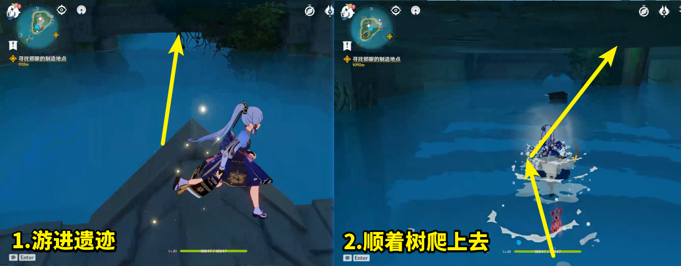 2、完成1后,四个雷方碑会解锁,在一定时间内点亮这四个雷方碑(用丽莎即可),即可让水位下降。