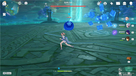 其中浅蓝色的“水滴”不会移动,但拥有治疗技能,每隔一段时间就会吐一个治疗球缓慢飘向无相之水,治疗球可以被玩家“抢断”,吃到时可以给当前角色恢复血量。