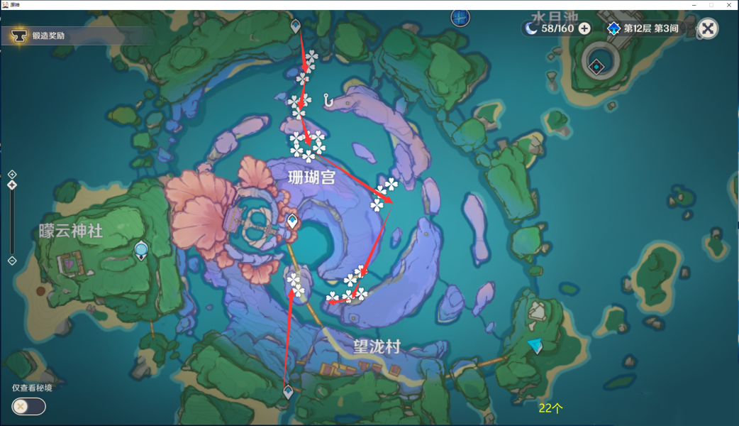 这个材料主要在珊瑚宫附近采集,具体路线如下。