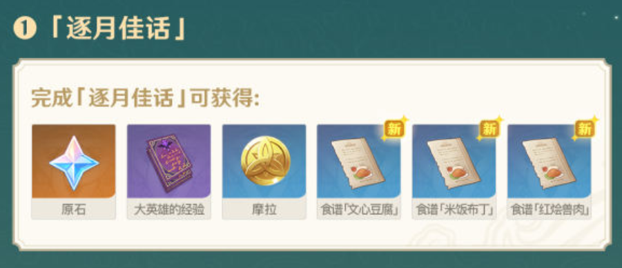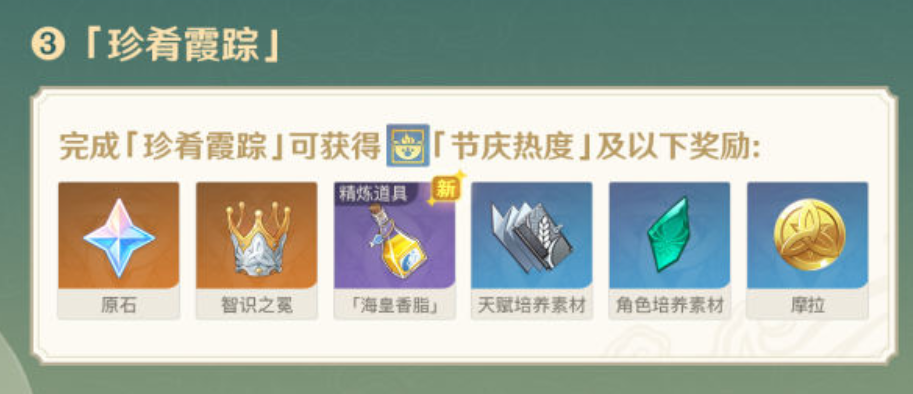 合计奖励:12本蓝色天赋书、420原石、32本大英雄经验书、72W摩拉、32块魔晶矿↓
