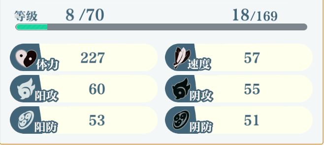 伙伴们的属性则是分为体力,速力,阴攻,阳攻,阴防,阳防六种属性。