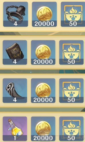 ●收集进度奖励:蓝色武器突破素材各四个 80000摩拉(八万) 200节庆热度 及「双手剑·衔珠海皇」精炼材料