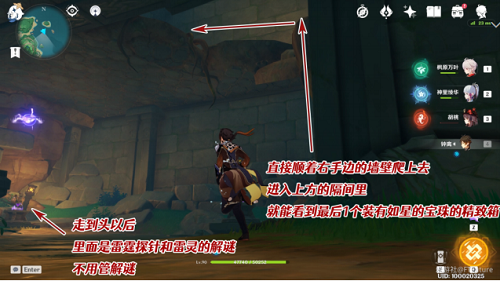 6、之后一路向内走到头,房间里面是几个雷灵和雷霆探针的解谜,不用管这个解谜(后续地下遗迹里的普通解谜可能会单开一帖来讲),直接抬头向上看,上面有一个隔间可以爬上去(类似海祇岛的水月池那种),上去之后就是最后1个装着如星的宝珠的精致箱。